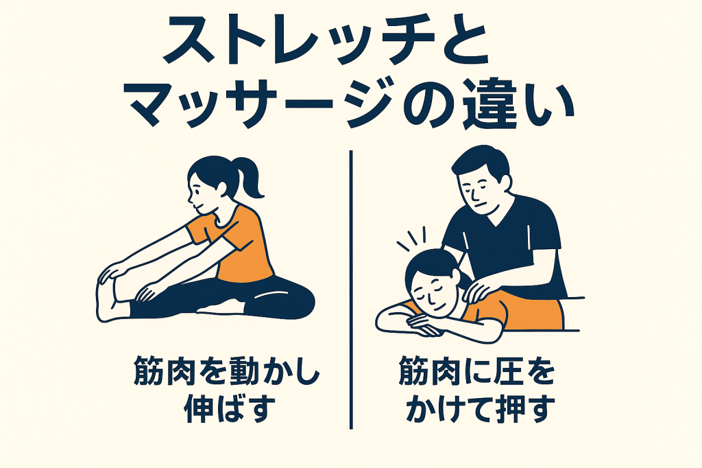 ストレッチとマッサージは一見似ているようで、その目的やアプローチには明確な違いがあります。両者の特性を理解し、自分の体調や生活習慣に合った方法を選ぶことが、健康とパフォーマンスを支える第一歩です。